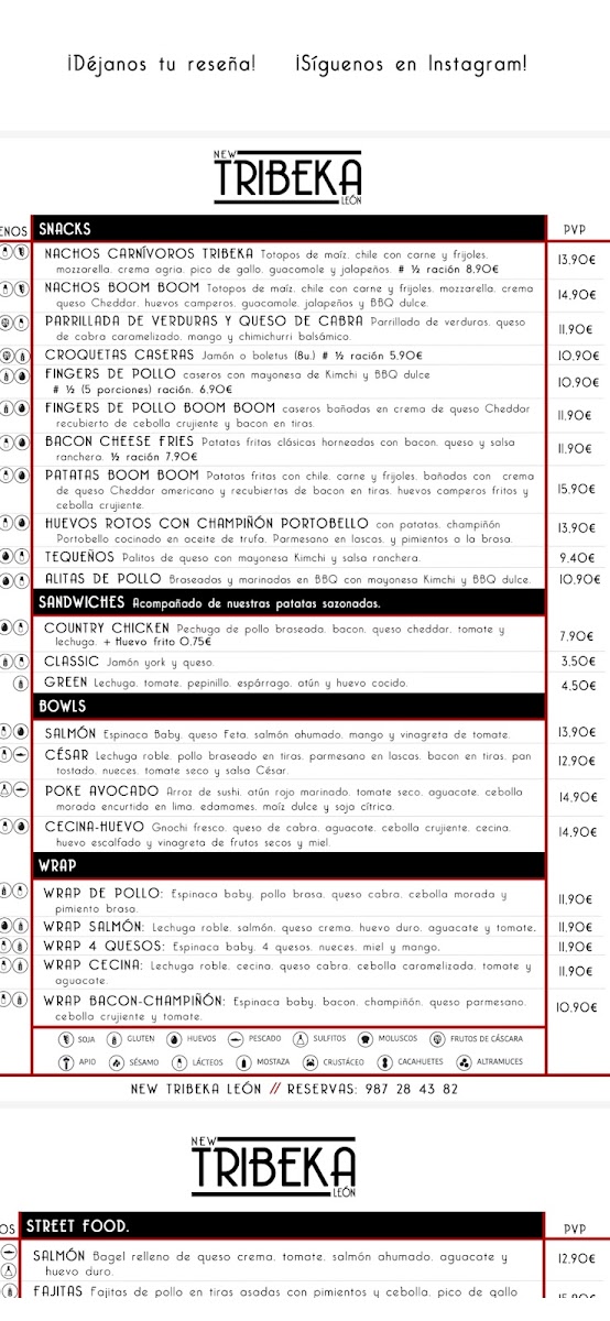 New Tribeka Snack Bar Menu